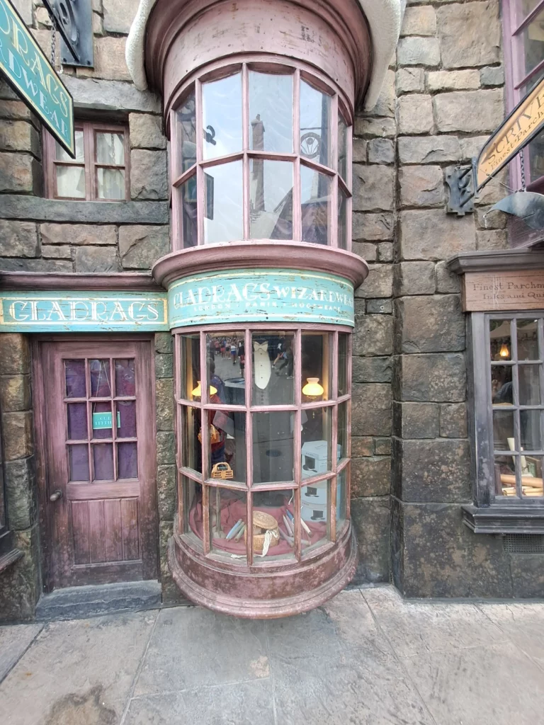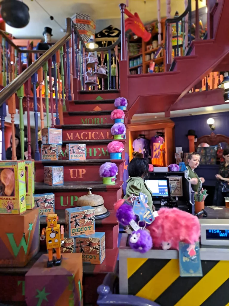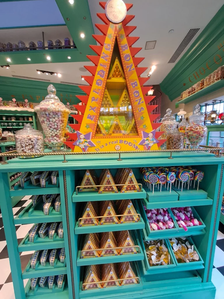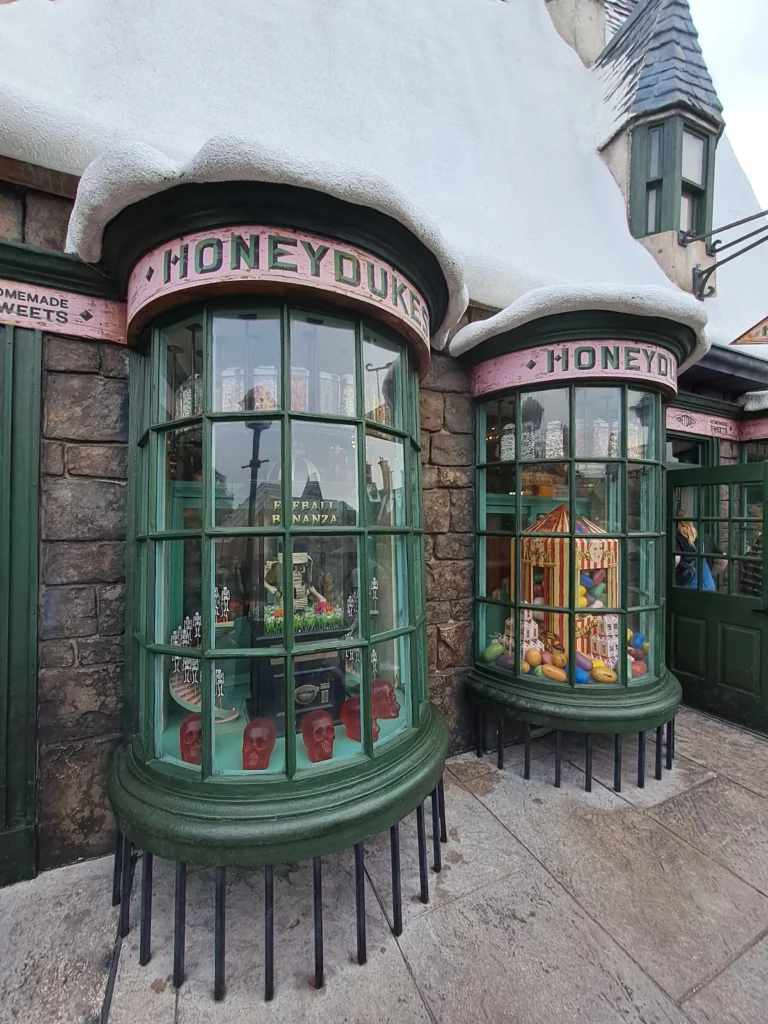 Plusieurs magasins vous attendent à Pré au Lard et il y a fort à parier que vous ne saurez plus où donner de la tête. Le magasin qui m’a le plus marqué est Honeydukes. J’y serais restée des heures pour découvrir tous les bonbons du film. Pour tout ce qui est Quidditch et accessoires magiques rendez-vous chez Dervish & Banges.
