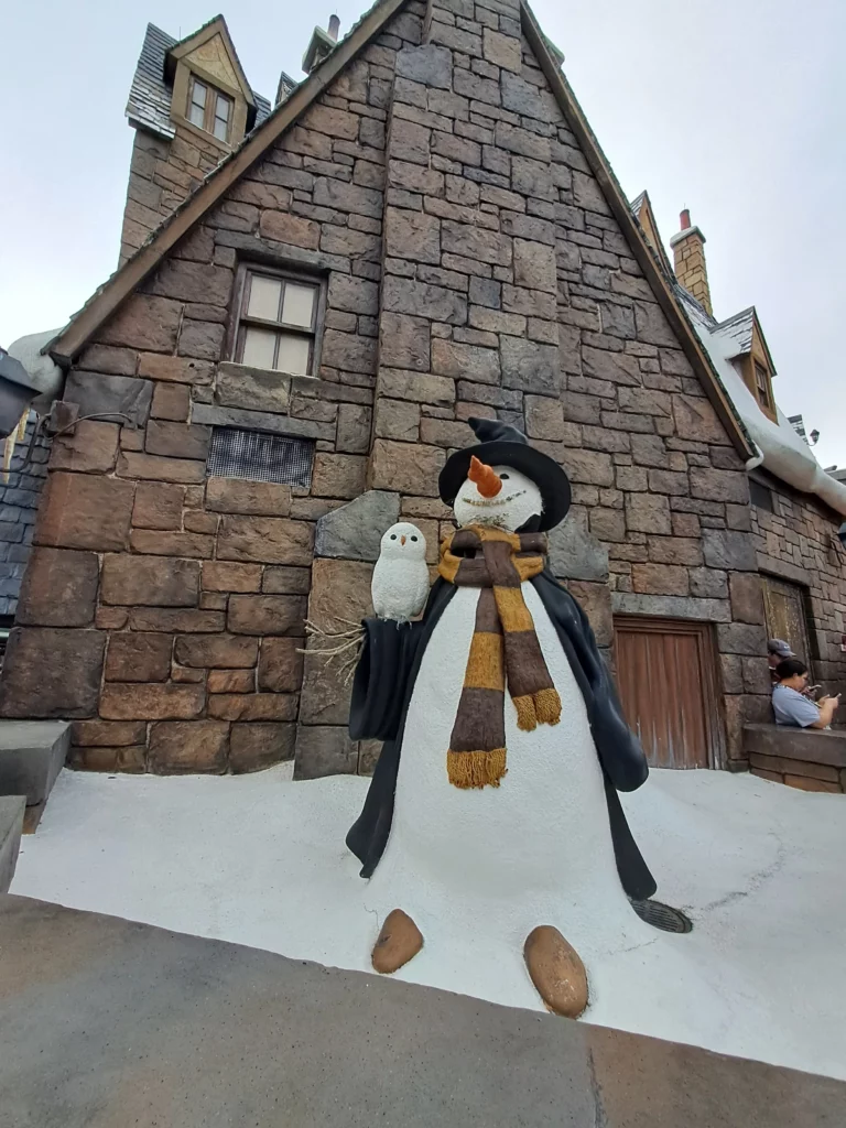 Nous avons commencé notre immersion par cette zone, mais, elle est tellement sympa que j’ai absolument voulu y retourner le soir. Le château de Poudlard est incroyable de jour mais il prend une toute autre ampleur féérique la nuit. Il est très agréable de se promener dans la rue principale de Pré au Lard représentée avec de la neige alors qu’on est en t-shirt et de se restaurer aux Trois Balais.